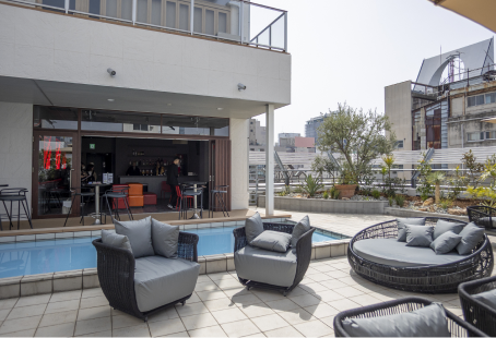 はい、可能です。 道頓堀で購入されたたこ焼きやスイーツなどを、当店の開放的なルーフトップテラスや快適なラウンジでごゆっくりお召し上がりいただけます。人混みを避けて休憩したい時にぜひご利用ください。