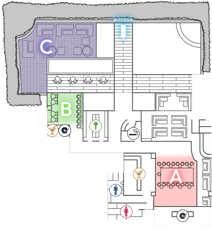 少人数の親密な集まりには、特定のエリアのみをレンタル。大規模なパーティーや企業イベントには、3エリアすべてを組み合わせた完全貸切も可能です。