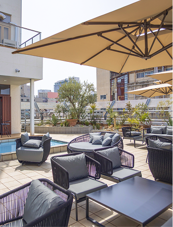 はい、可能です。 道頓堀で購入されたたこ焼きやスイーツなどを、当店の開放的なルーフトップテラスや快適なラウンジでごゆっくりお召し上がりいただけます。人混みを避けて休憩したい時にぜひご利用ください。
